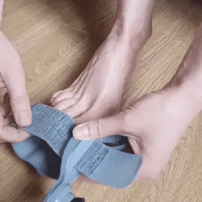 Coloca el corrector en el pie afectado.