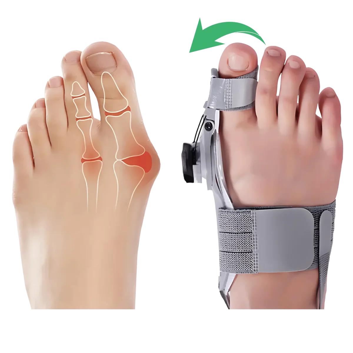 StepCare es un corrector ajustable de juanetes, diseñado para alinear progresivamente el dedo gordo, reducir la presión y aliviar el dolor sin tratamientos invasivos.